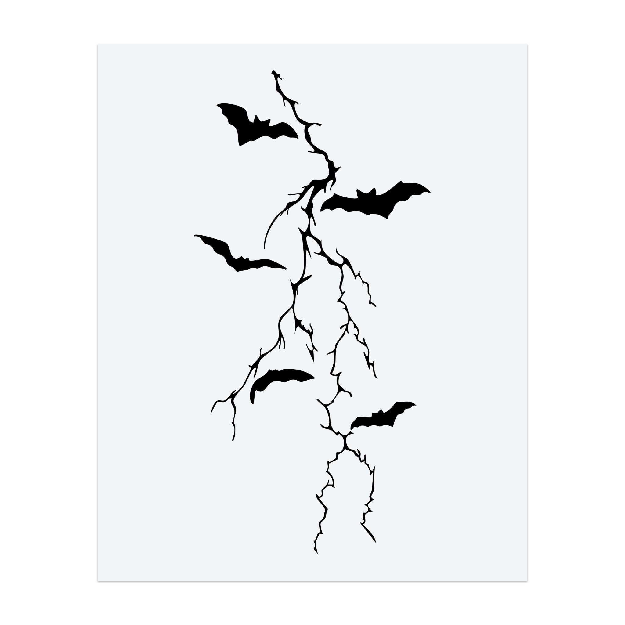 A bold blackwork tattoo showing bats flying out of cracks like lightning. It tells a story of darkness breaking free, mixing mystery, night power, and a touch of gothic style.