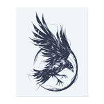 A majestic crow with powerful wings in mid-flight, its feathers stretching and swirling. The tattoo symbolizes mystery, freedom, and transformation, capturing the spirit of the crow soaring through the skies.