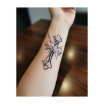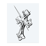 A bold cross with rough stone-like edges glows with a sharp burst of light at its center. This tattoo shows faith and hope, shining strong in a rugged tribal style.