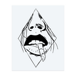 A bold minimalist tattoo of open lips with a tongue sticking out, framed by sharp diamond lines. It gives a wild, rebellious story of attitude and daring style in a simple, edgy design.