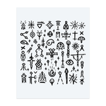 A mix of strange symbols, eyes, and shapes that look like magic signs. This minimalist tattoo feels ancient and mysterious, like secret runes from another world.