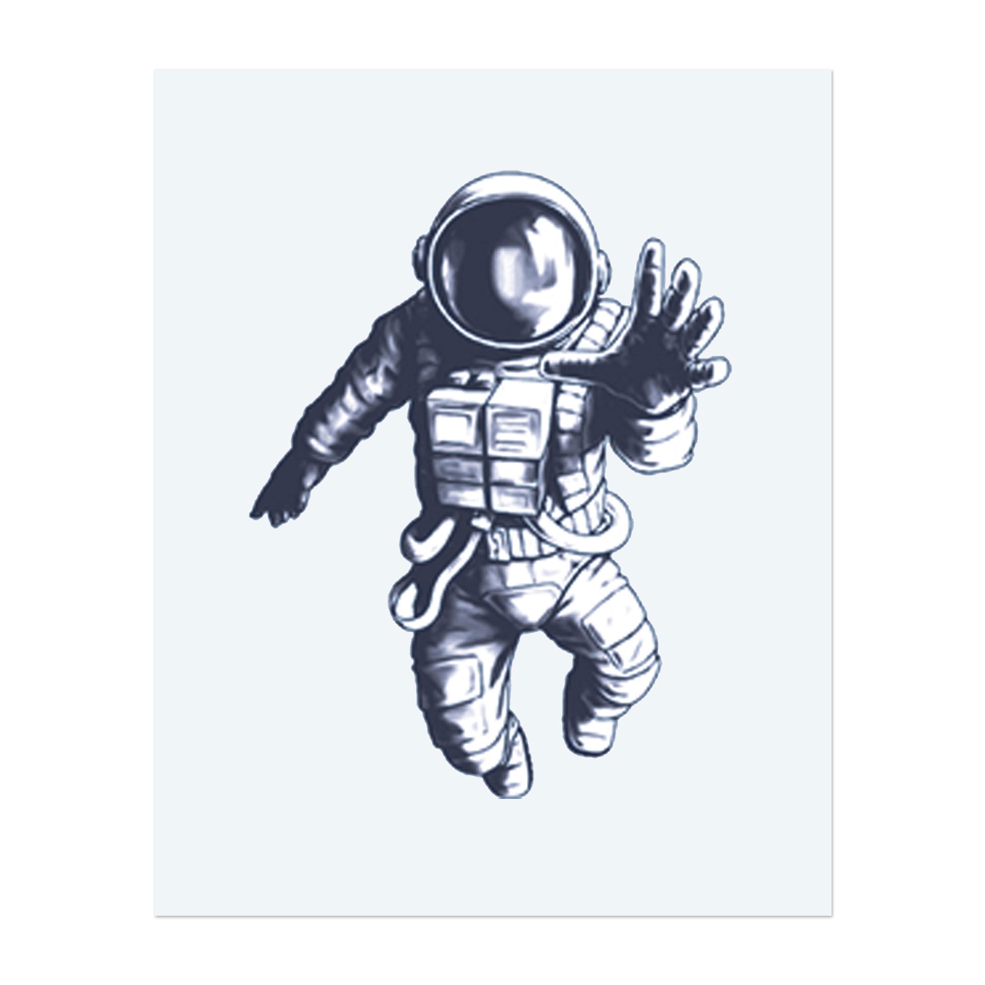 An astronaut floating in space, wearing a full suit with outstretched arms. This tattoo represents exploration, adventure, and the pursuit of dreams, perfect for those who feel drawn to the unknown and the limitless possibilities of the universe.
