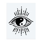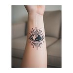 A glowing eye with a yin-yang symbol inside, shining with bright rays. This mystical tattoo in bold line art shows balance, wisdom, and light watching over everything.