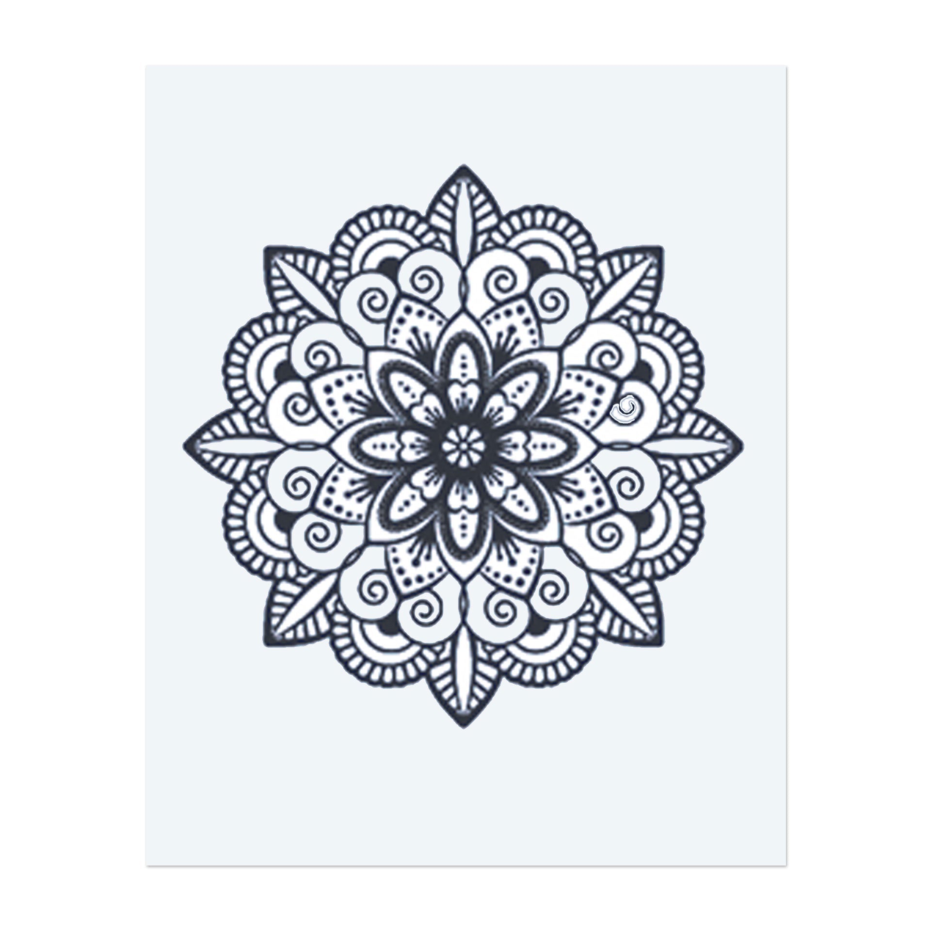 A beautiful, detailed mandala with intricate floral patterns. This tattoo symbolizes balance, harmony, and spiritual growth, perfect for those who appreciate inner peace and symmetry.