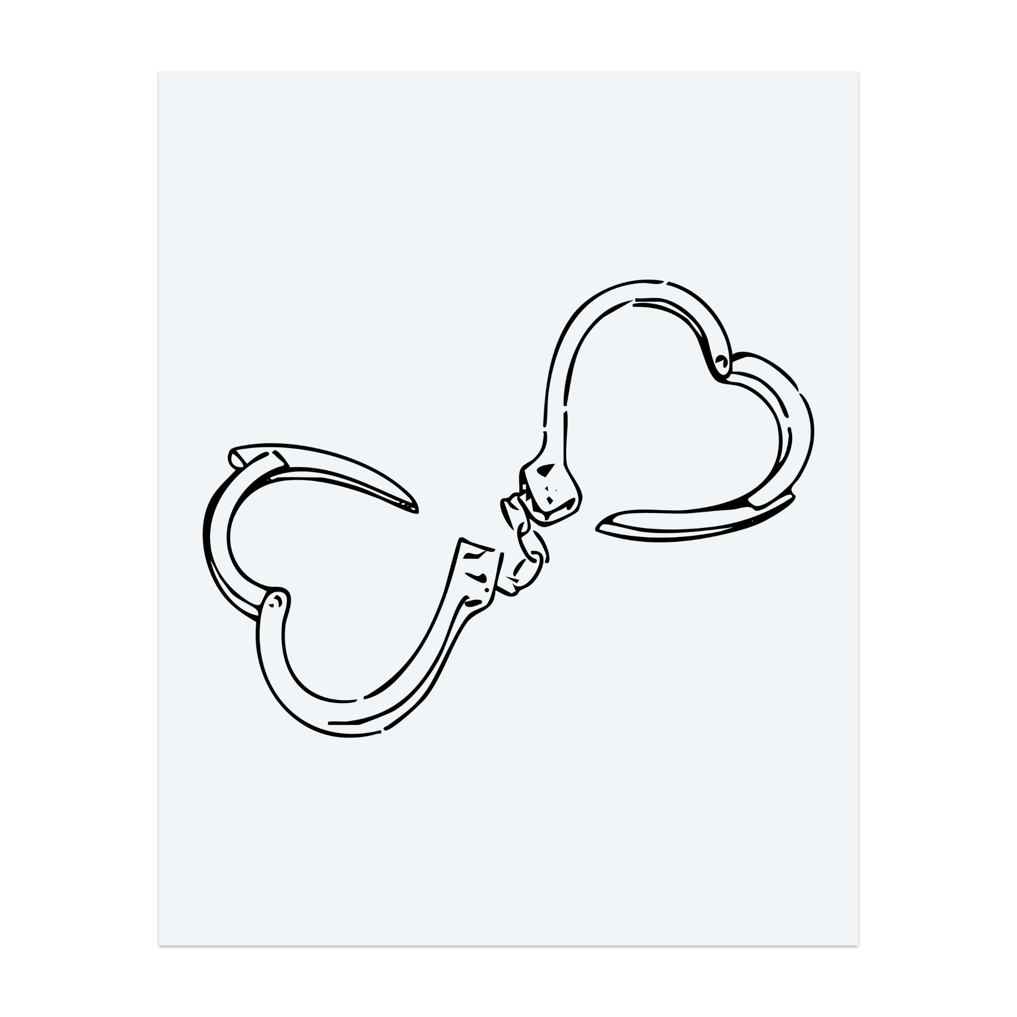 A minimalist tattoo of two open handcuffs shaped like hearts. It tells a playful story of love as both a bond and a freedom, mixing romance with bold, edgy style.