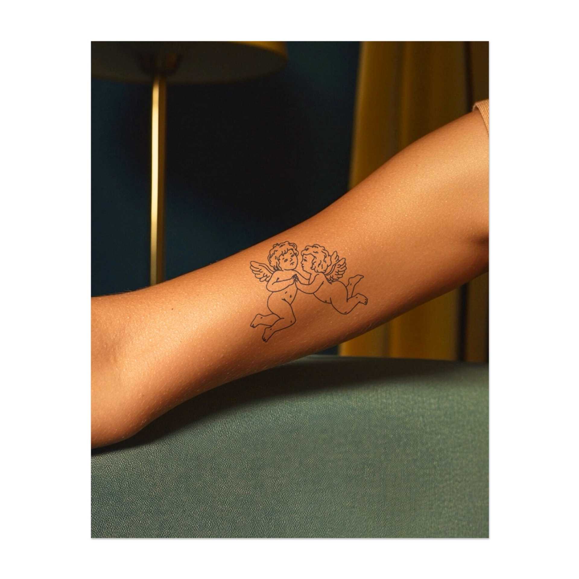 Two cherubs embracing. Represents love, innocence, or a classic symbol of affection. A traditional and romantic design.
