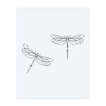 Two dragonflies drawn in thin, simple lines fly side by side. Their clear wings and light style make this minimalist tattoo feel free and peaceful, like summer days near a calm river.
