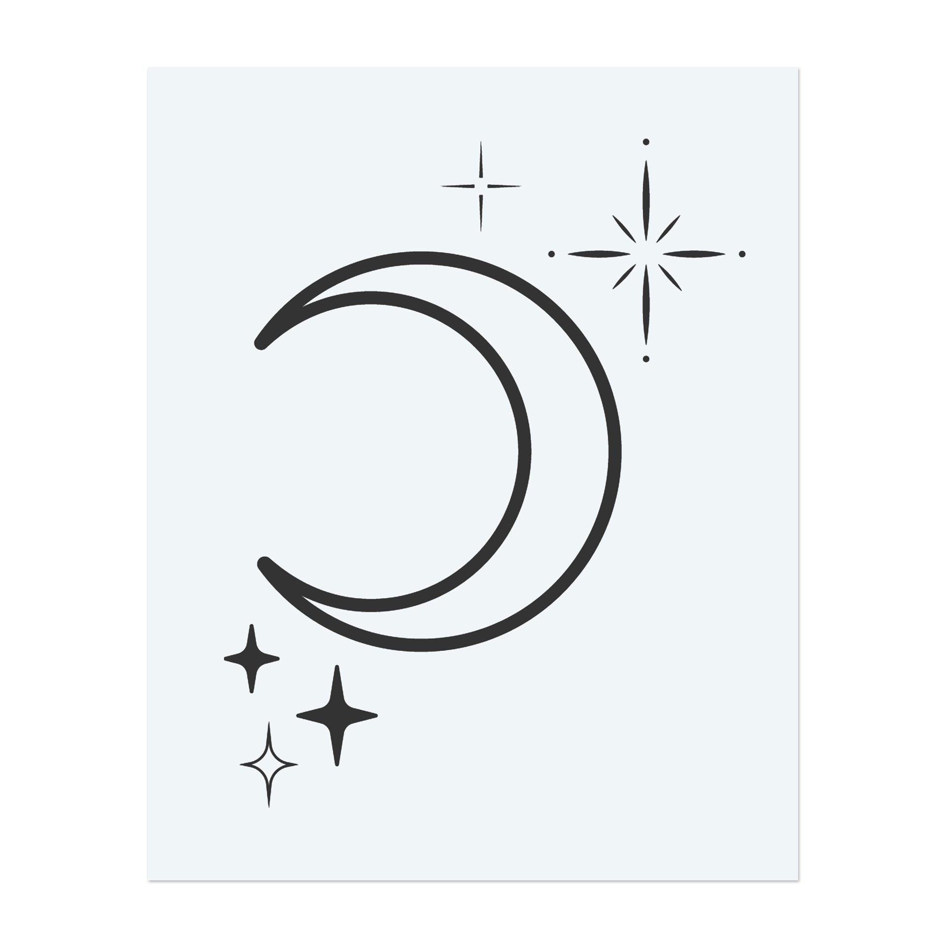 A graceful crescent moon framed by twinkling stars of various shapes and sizes. This celestial design exudes mystery, intuition, and cosmic beauty—perfect for a dreamy, night-sky-inspired look.