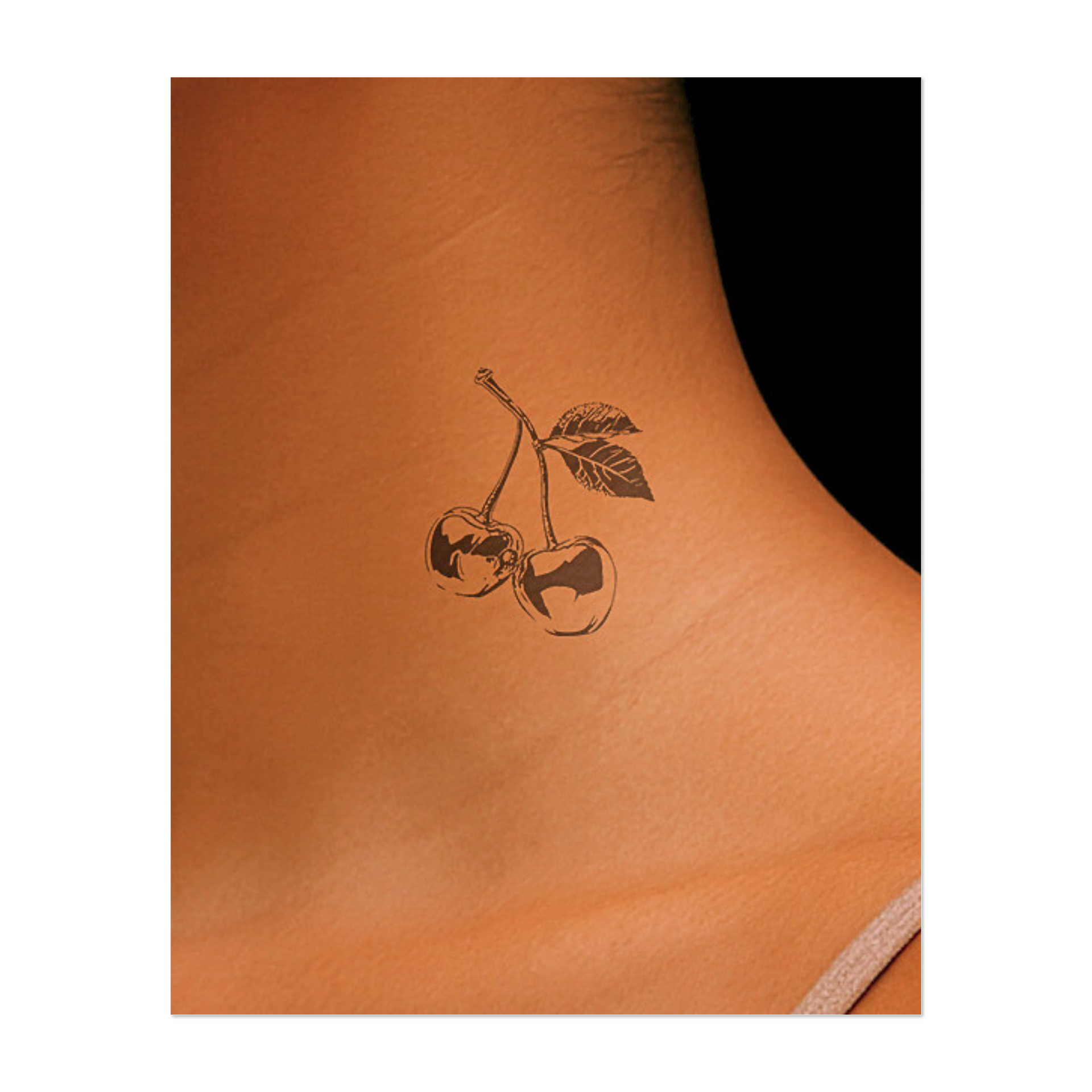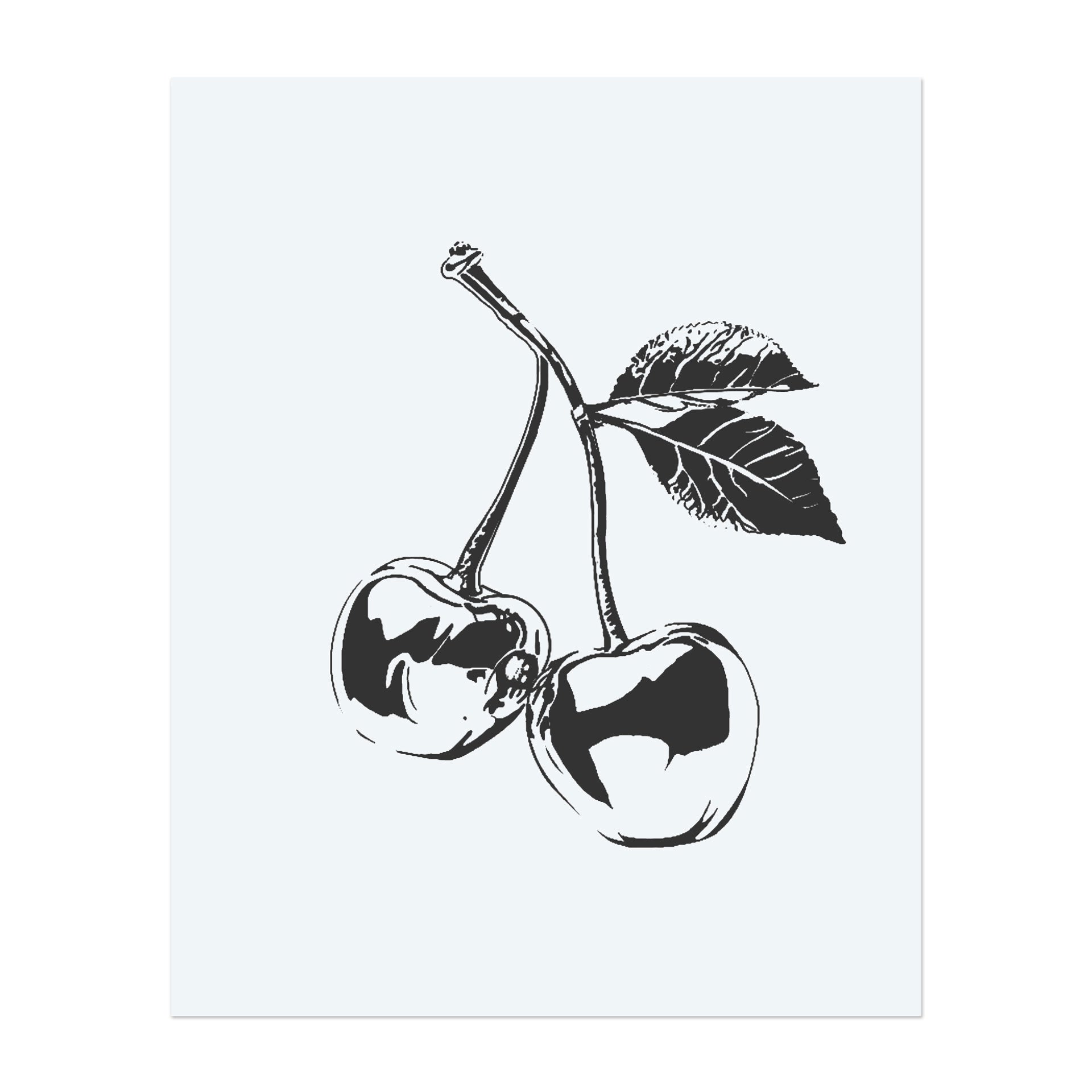 A beautifully detailed illustration of two cherries with rich shading and textured leaves. This classic design combines natural elegance with retro charm—perfect for a sweet, eye-catching, and timeless look.