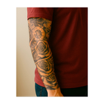 This sleeve features roses intertwined with clock gears and a soaring dove, symbolizing the passage of time, the eternal beauty of love, and freedom. The flowing design captures the balance between fleeting moments and everlasting memories.