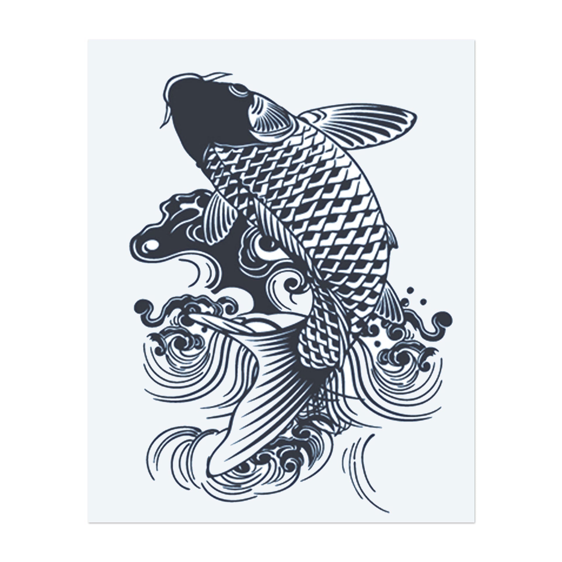 A vibrant koi fish swimming through swirling waves. This tattoo symbolizes strength, perseverance, and transformation, inspired by the Japanese belief that koi fish can overcome obstacles.