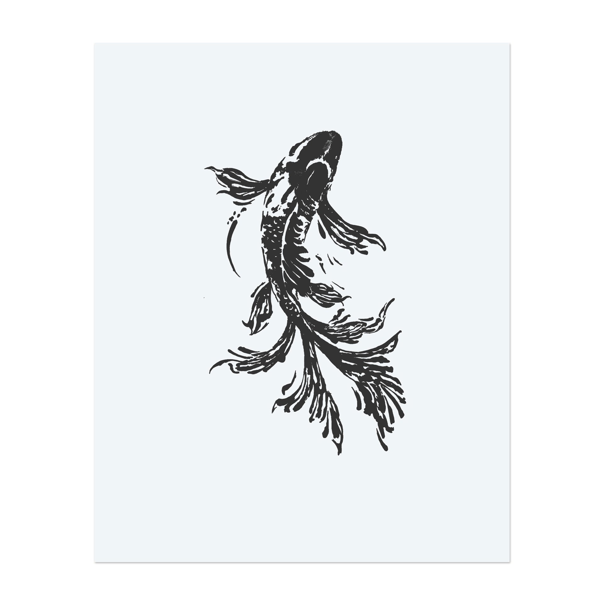 An artfully designed koi fish with dynamic, flowing fins in an expressive ink look. The contrasting black areas lend the motif depth and an elegant, meditative aura—a symbol of strength and endurance.