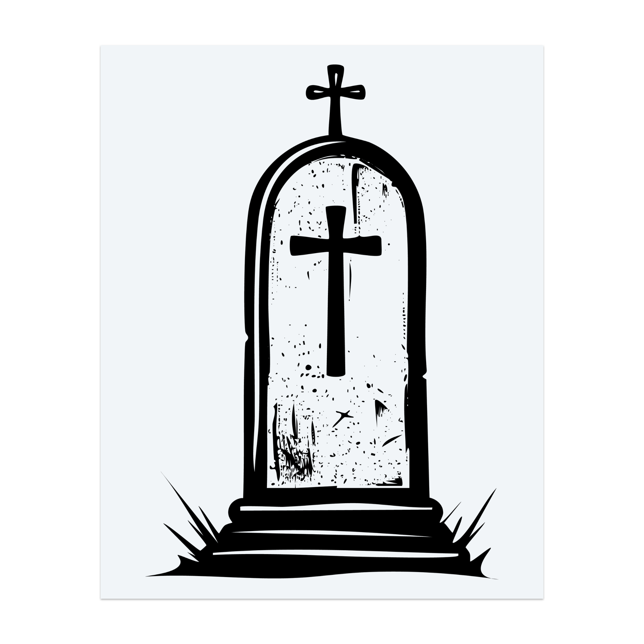 A spooky gravestone with two crosses on top, and it looks all scratched up. The spooky, messy style is a perfect way to bring your Halloween costume to life!