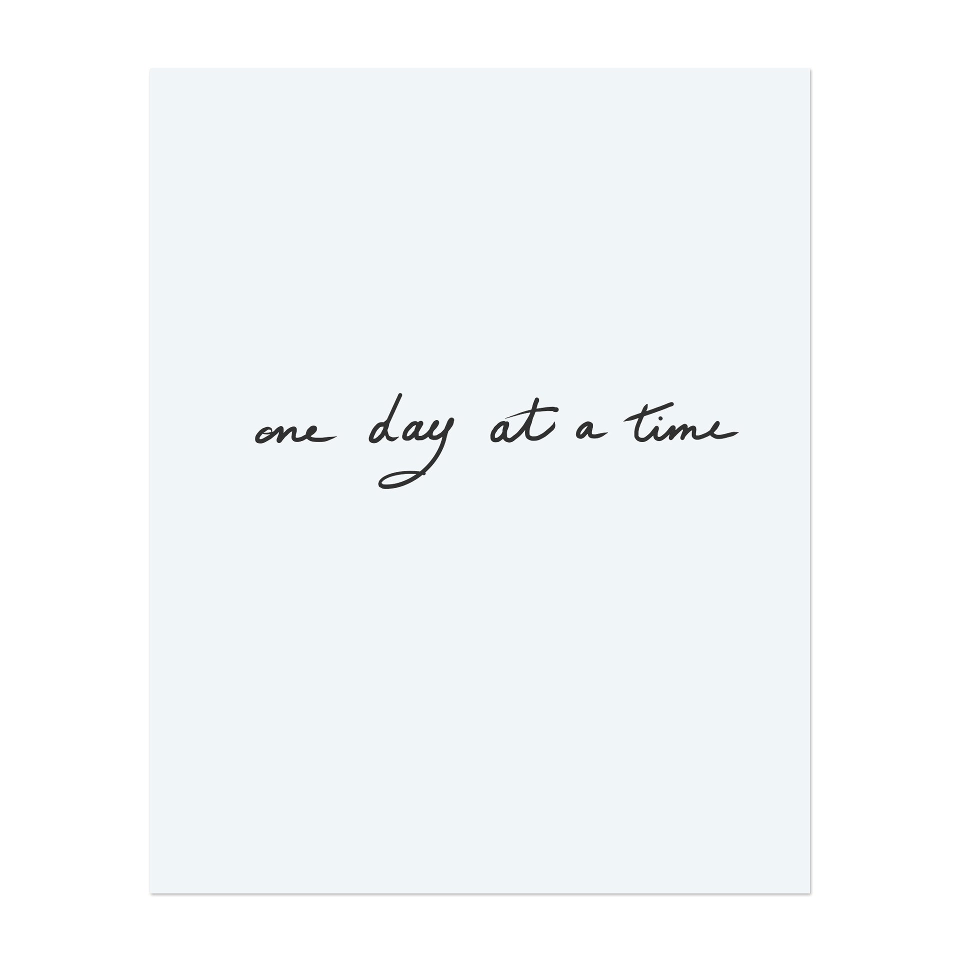An elegant, handwritten lettering with the motivational message "one day at a time." The gentle lines convey calm and confidence—perfect as a daily reminder of mindfulness and serenity.