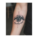 A bold blackwork tattoo of a wide eye with a shining star bursting at its center. It tells a story of vision, light, and mystery, as if the universe itself is watching through the eye.