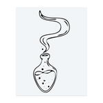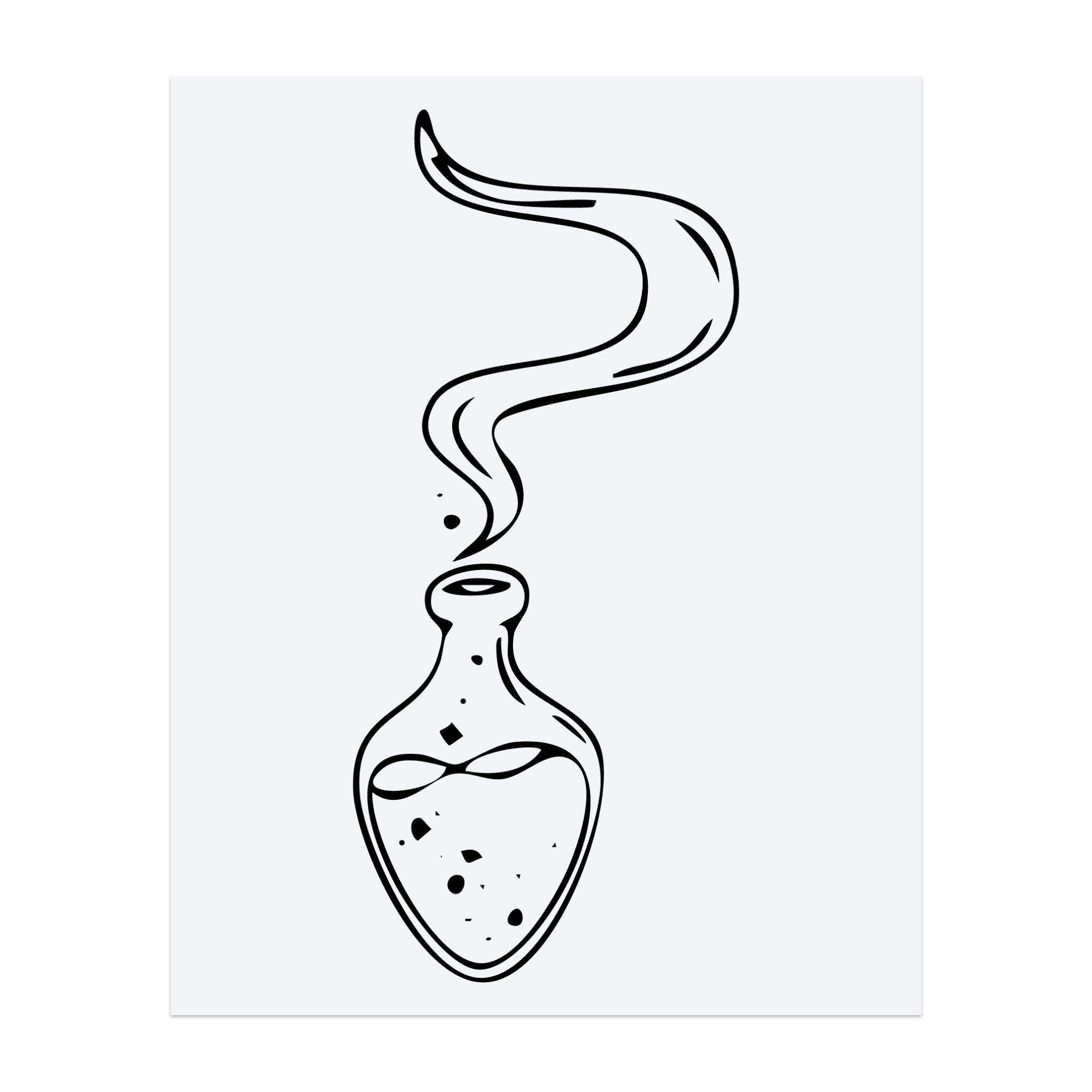 A black and white tattoo of a witch's potion bottle with mysterious smoke rising from the top. The simple and clean style makes it a classic symbol of magic and mystery for any spooky occasion.