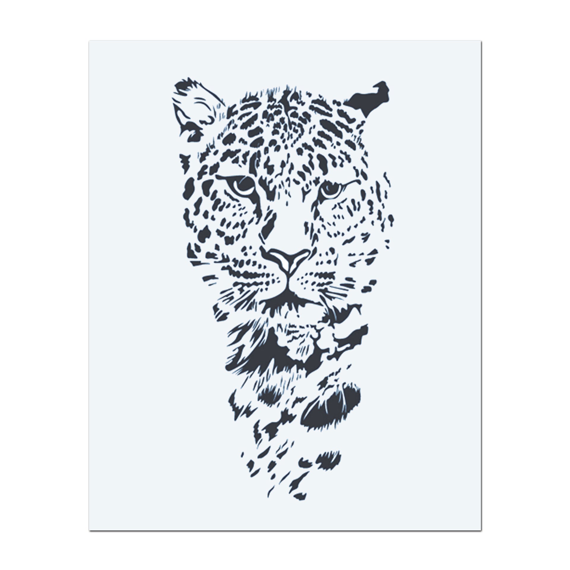 A calm leopard face with spots fading down in a clean, minimalist style. This tattoo shows quiet strength and grace, reminding you to stay focused and brave each day.