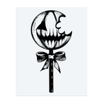 A sweet treat with a spooky twist! This black-and-white tattoo shows a lollipop with a terrifying face—a jack-o'-lantern mouth and a ghastly eye.