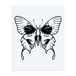 A bold blackwork tattoo of a moth with wings shaped like skulls. It mixes beauty and darkness, telling a story of mystery, change, and the link between life and death.