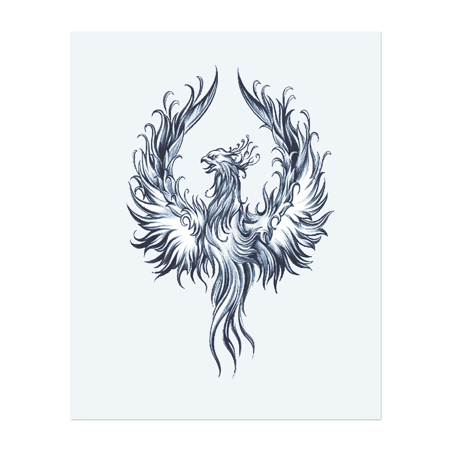 A majestic phoenix, with wings spread wide and flames flowing from its feathers, rising from the ashes. This tattoo represents rebirth, strength, and transformation. A perfect symbol for those who have overcome challenges and emerged stronger.