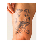 A bundle of fierce shark tattoos: sharks with sharp teeth, a shark hooked by an anchor, and various action-packed poses. These designs embody strength, fearlessness, and power, capturing the raw energy of the ocean predator.