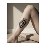 A real human heart drips with dark ink and deep lines. This blackwork tattoo shows raw emotion and strength, symbolizing love that never fades.
