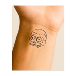 A cartoonish skull with exaggerated features. Represents humor, a playful take on mortality, or a unique style. A distinctive and lighthearted design.