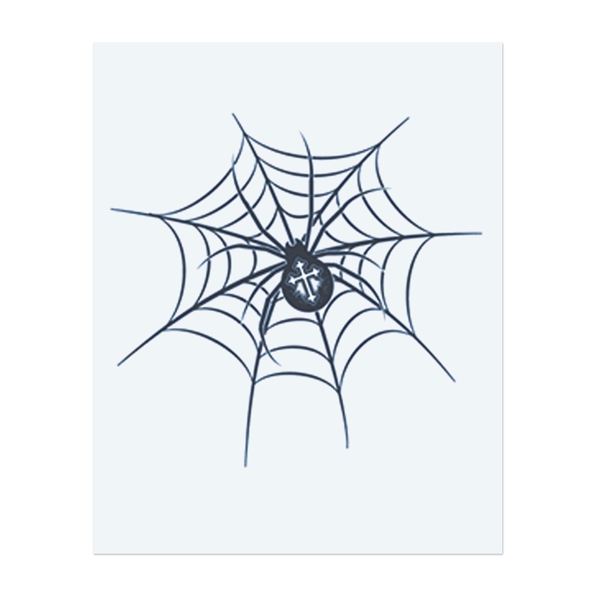 A delicate spider weaves its web, each thread connecting to another. This minimalist tattoo shows the beauty of nature’s design with soft, thin lines, capturing the intricate web spun by the tiny spider at its center.