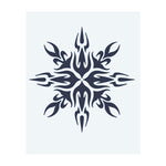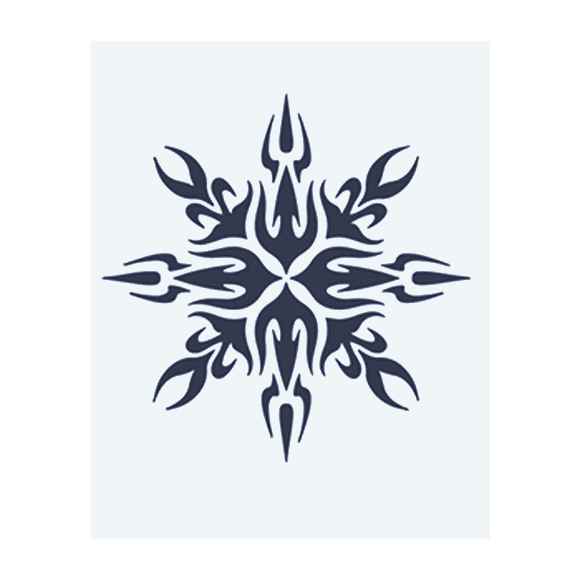 A stylized snowflake with tribal or geometric elements. Represents uniqueness, winter, or a blend of natural and cultural patterns. A distinct and symbolic design.