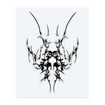 A tribal-style tattoo forming the shape of a fierce skull with sharp, flowing lines. It tells a story of strength and fearlessness, showing power hidden inside dark and wild patterns.