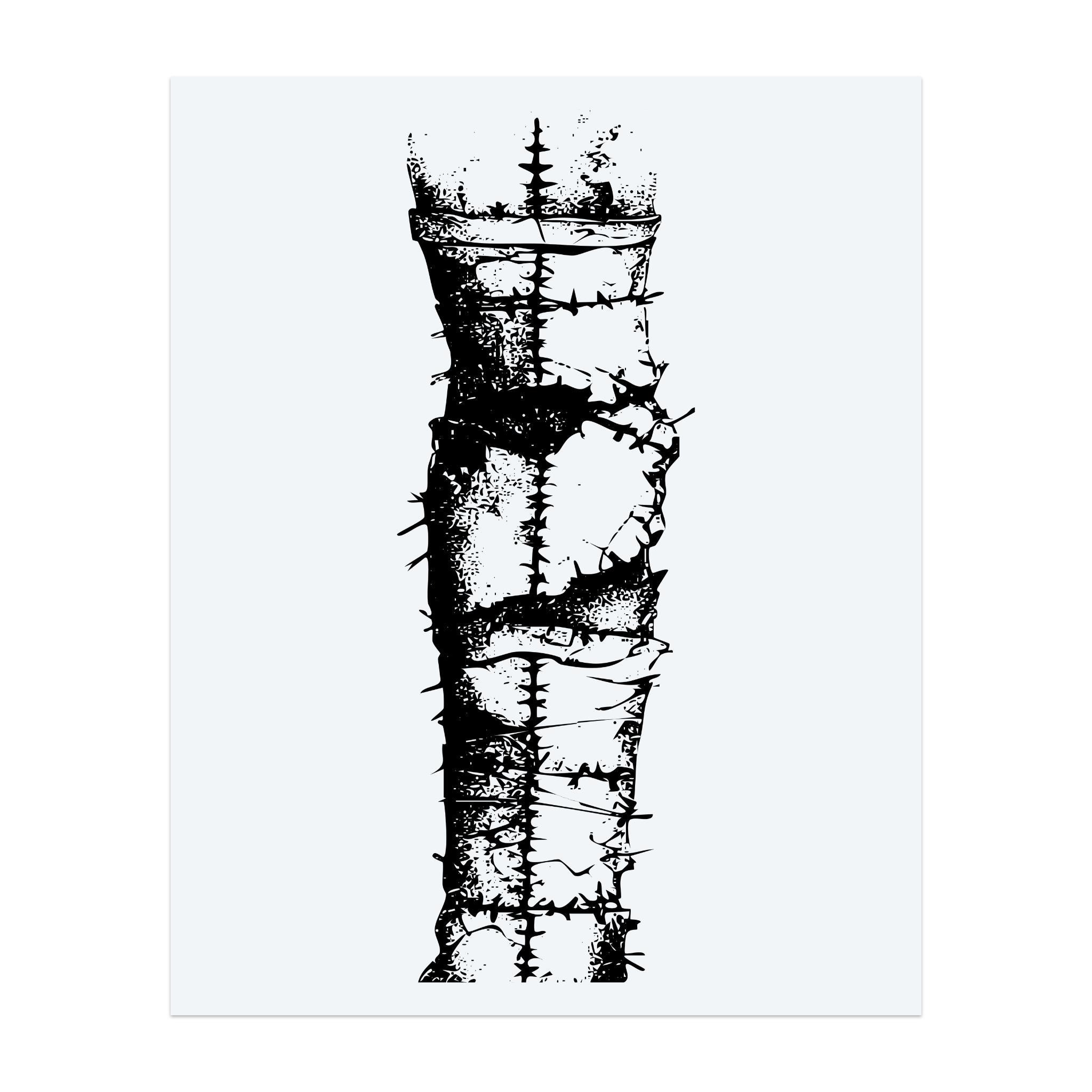 A black and white design of barbed wire tightly wrapped around an arm. The spiky, textured style makes a powerful and edgy statement, giving you a tough, no-nonsense look for Halloween.