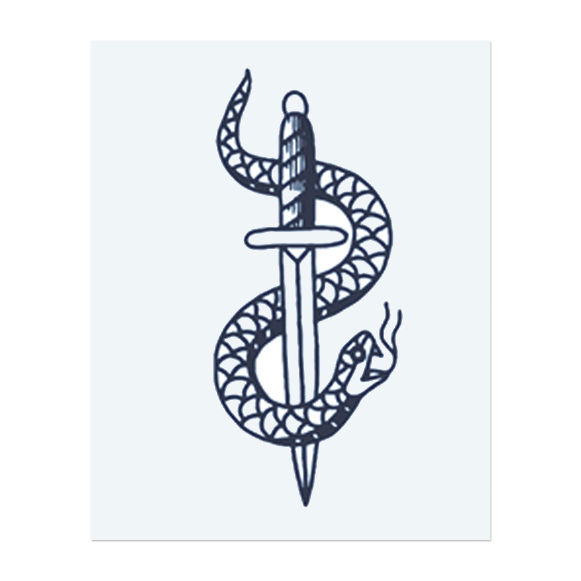 A snake coiled around a dagger. Represents danger, protection, or a struggle between opposing forces. A classic and symbolic design.