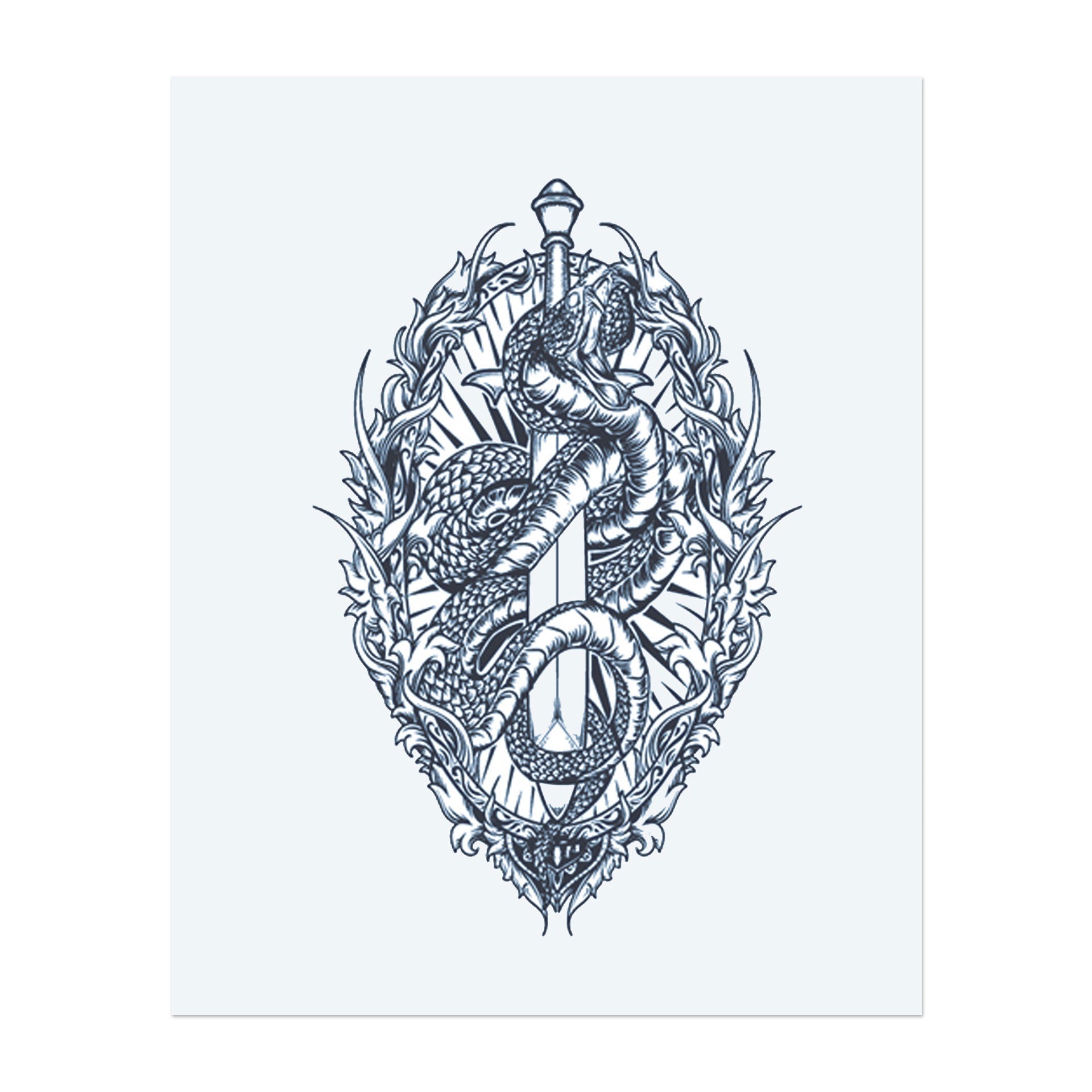 A sword surrounded by intertwined serpents, crowned with thorns and intricate details. This design symbolizes power, protection, and transformation, reflecting both danger and wisdom. Ideal for someone who values strength and the balance between life and death.